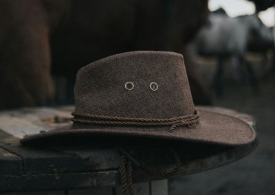 Chapéu de couro marrom estilo country com aba larga